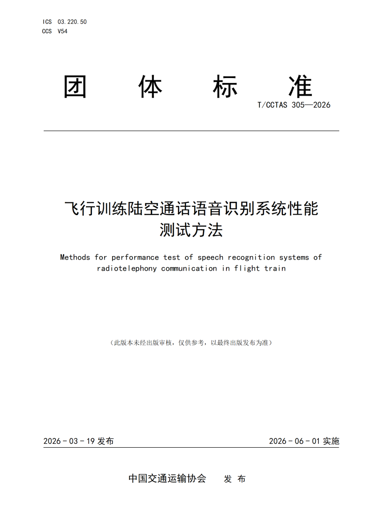 T_CCTAS 305-2026 飞行训练陆空通话语音识别系统性能测试方.pdf