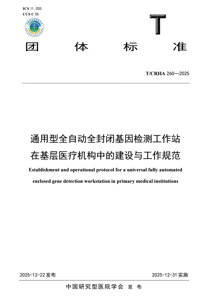 T_CRHA 260-2025 通用型全自动全封闭基因检测工作站在基层医.pdf