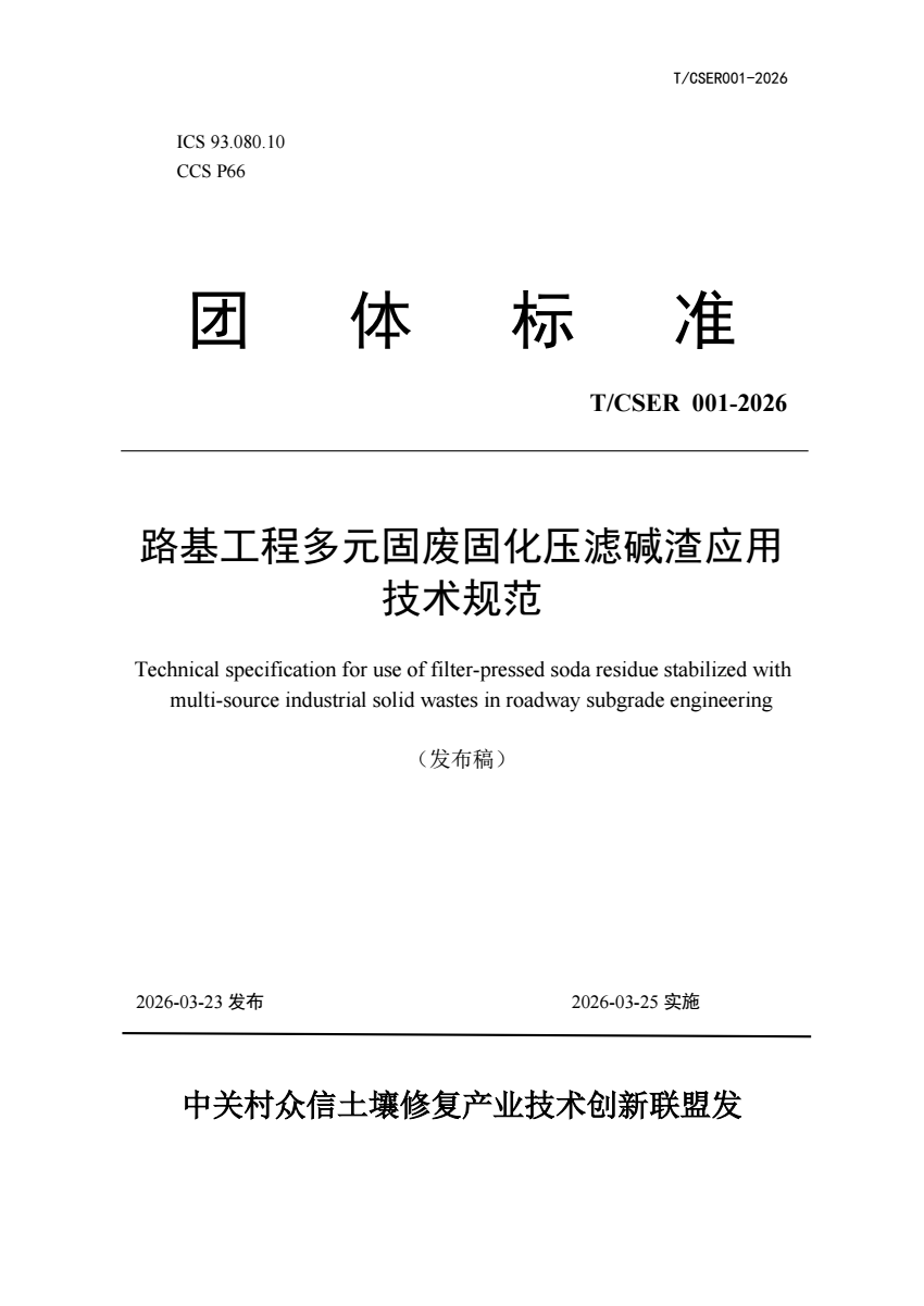 T_CSER 001-2026 路基工程多元固废固化压滤碱渣应用技术规范.pdf