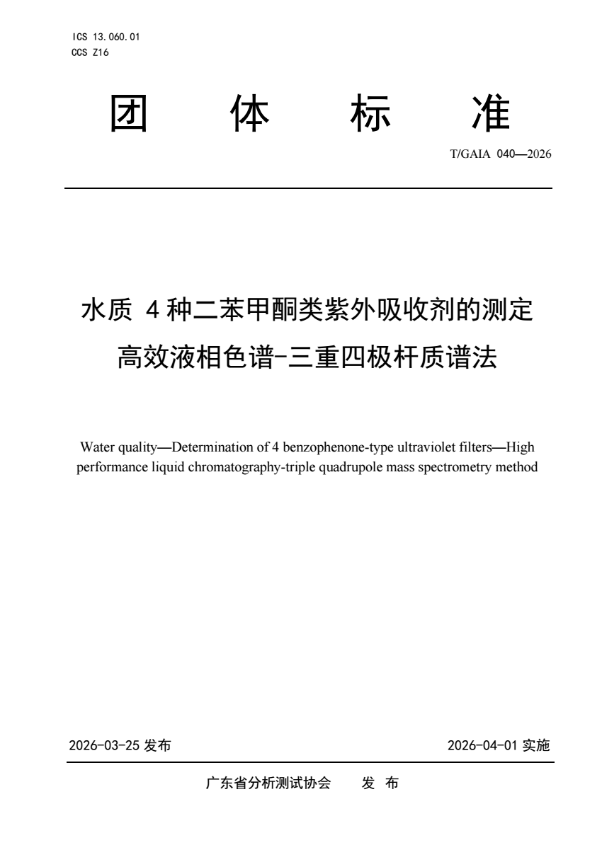 T_GAIA 040-2026 水质 4种二苯甲酮类紫外吸收剂的测定 高.pdf