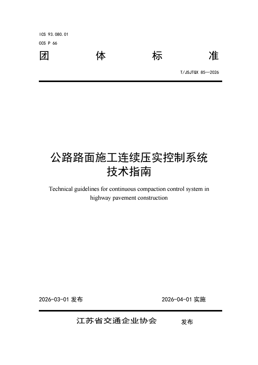 T_JSJTQX 85-2026 公路路面施工连续压实控制系统技术指南.pdf