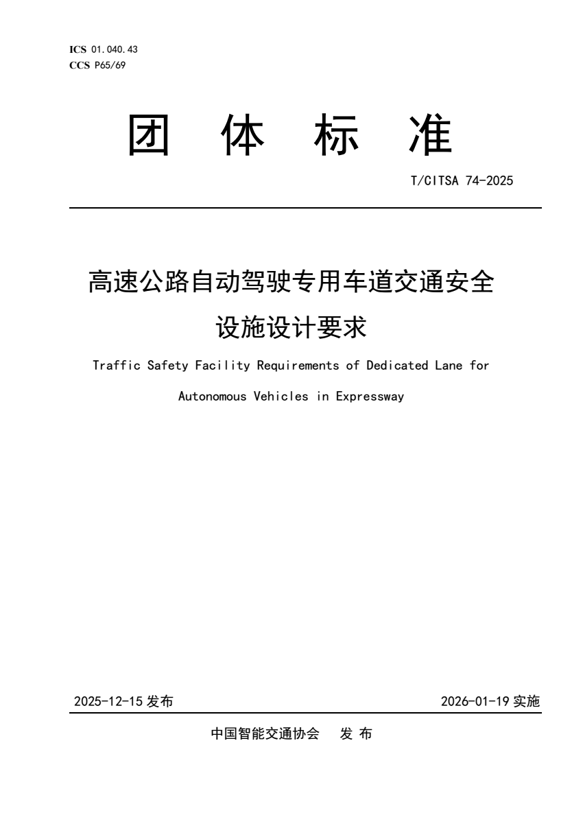 T_CITSA 74-2025 高速公路自动驾驶专用车道交通安全设施设计.pdf