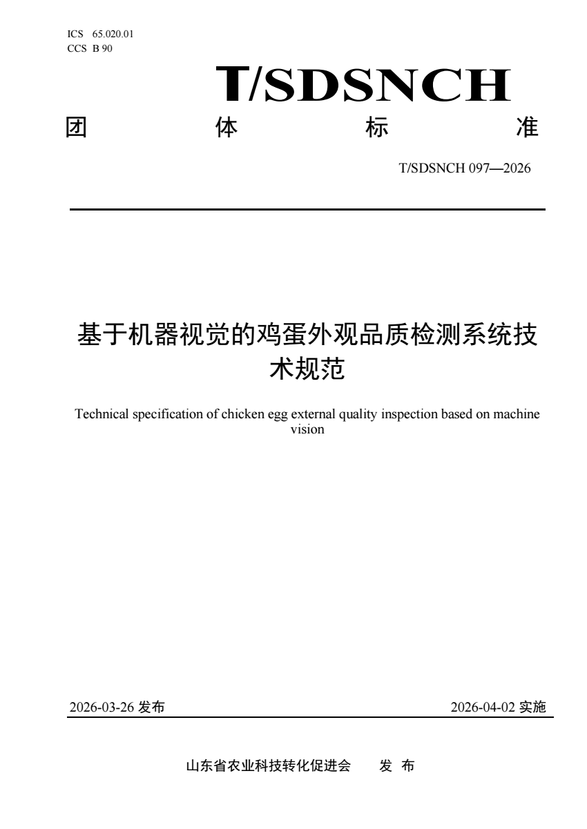 中文名称:基于机器视觉的鸡蛋外观品质检测系统技术规范