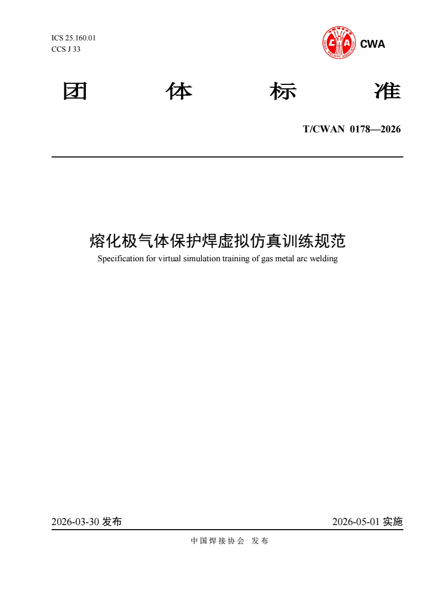 T_CWAN 0178-2026 熔化极气体保护焊虚拟仿真训练规范.pdf