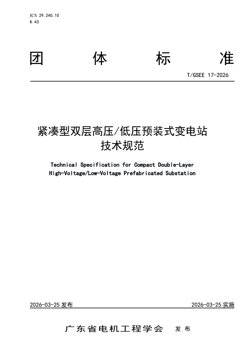 T_GSEE 17-2026 紧凑型双层高压_低压预装式变电站 技术规范.pdf (330.48 KB)