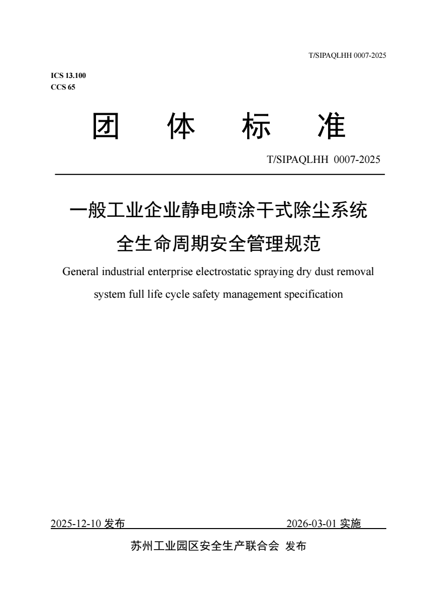 中文名称:一般工业企业静电喷涂干式除尘系统全生命周期安全管理规范