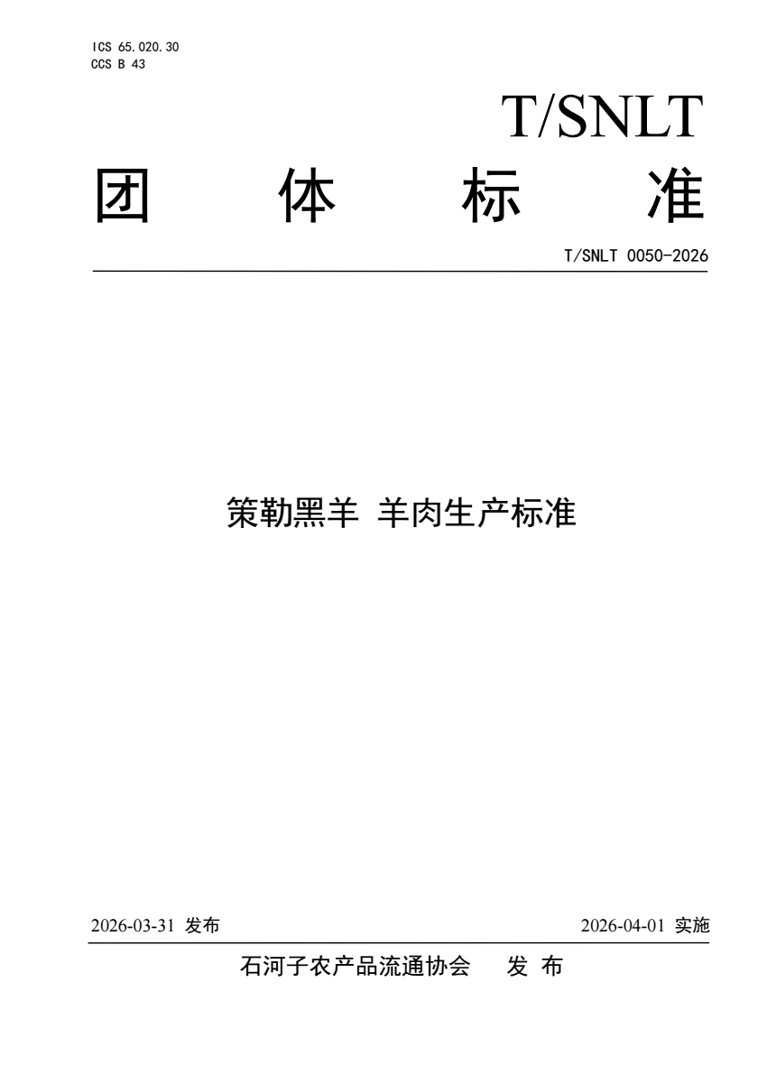 T_SNLT 0050-2026 策勒黑羊 羊肉生产标准.pdf
