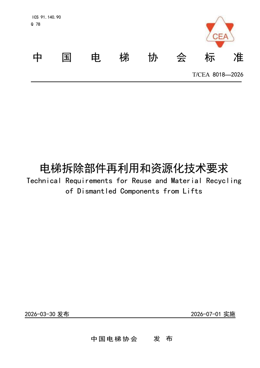 T_CEA 8018-2026 电梯拆除部件再利用和资源化技术要求.pdf