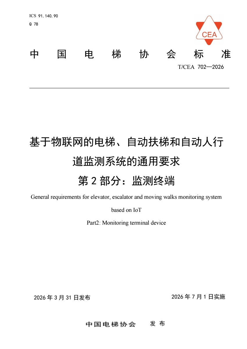 T_CEA 702-2026 基于物联网的电梯、自动扶梯和自动人行道监测.pdf