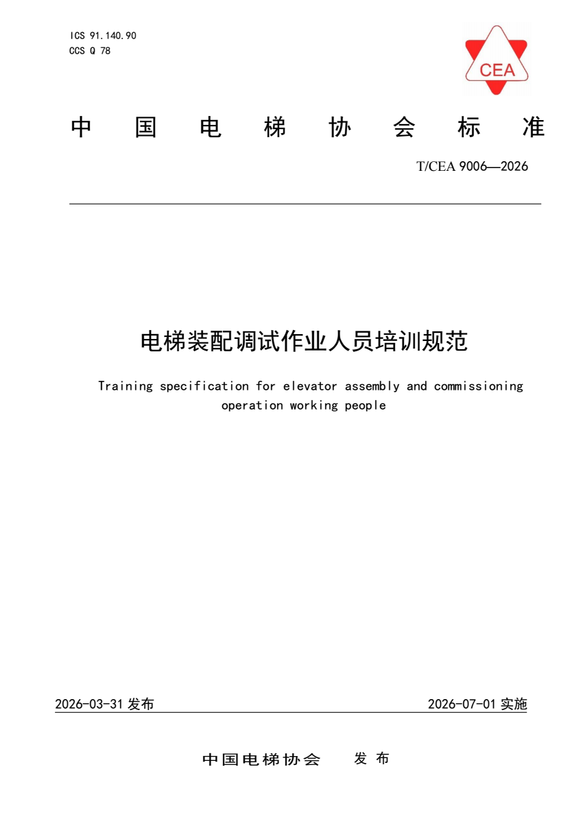 T_CEA 9006-2026 电梯装配调试作业人员培训规范.pdf