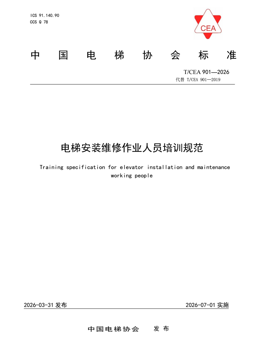 T_CEA 901-2026 电梯安装维修作业人员培训规范.pdf