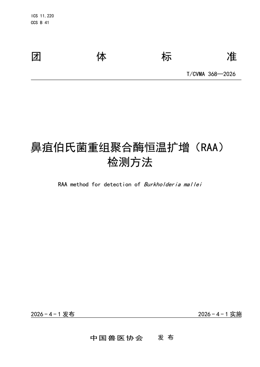 T_CVMA 368-2026 鼻疽伯氏菌重组聚合酶恒温扩增(RAA)检.pdf