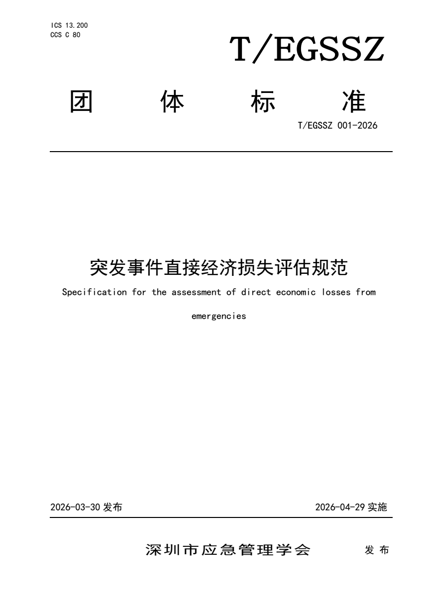 T_EGSSZ 001-2026 突发事件直接经济损失评估规范.pdf