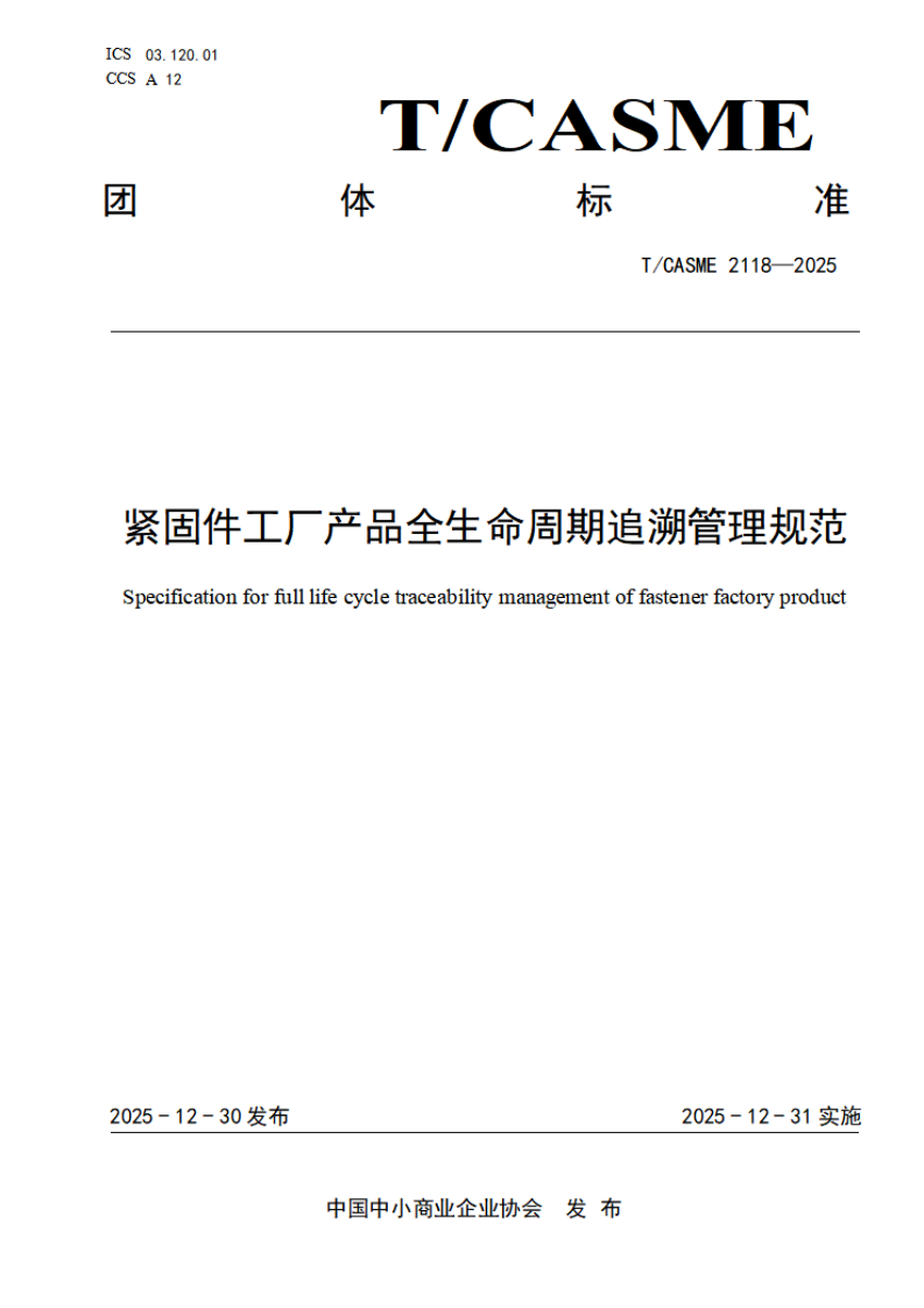 T_CASME 2118-2025 紧固件工厂产品全生命周期追溯管理规范.pdf
