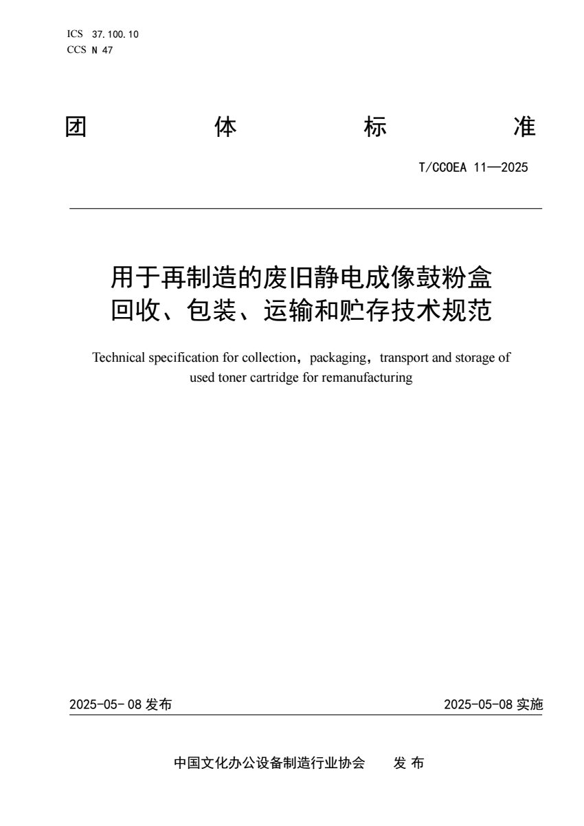 T_CCOEA 11-2025 用于再制造的废旧静电成像鼓粉盒 回收、包.pdf