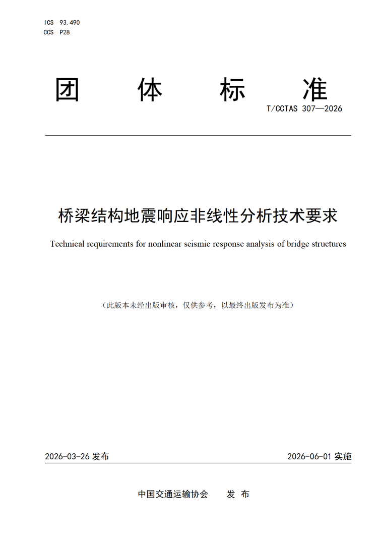 T_CCTAS 307-2026 桥梁结构地震响应非线性分析技术要求.pdf