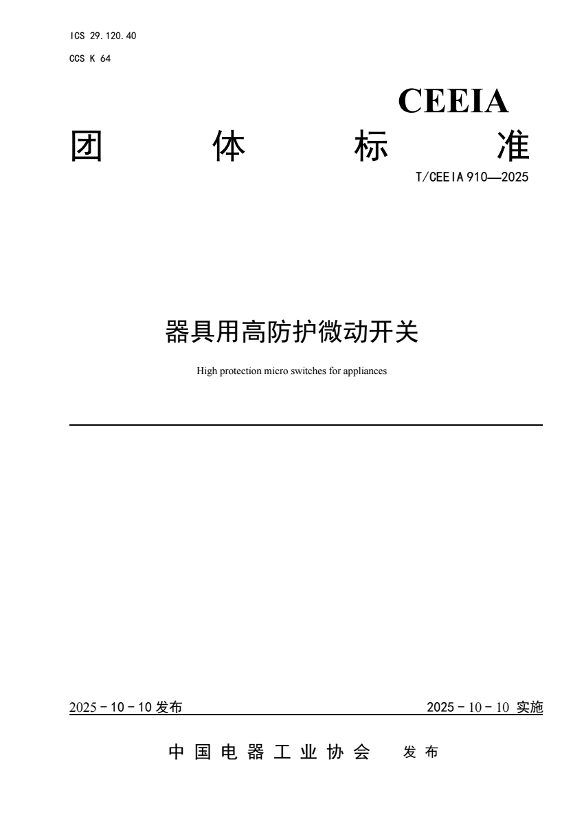 T_CEEIA 910-2025 器具用高防护微动开关.pdf