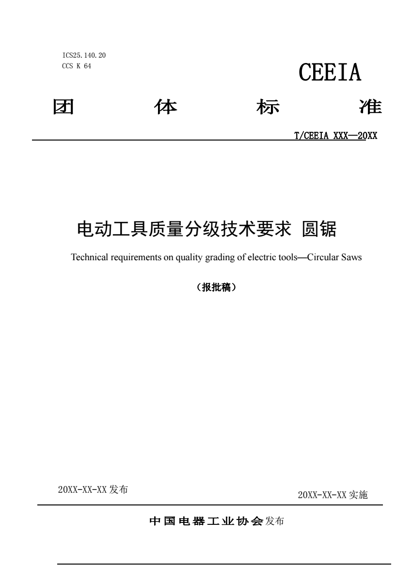 英文名称:Technical requirements on quality grading of electric tools—Circular Saws