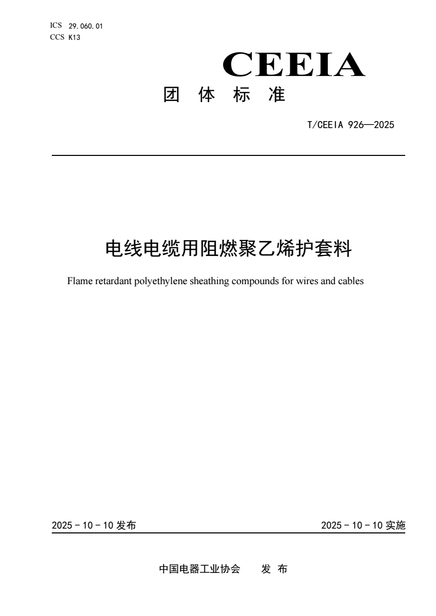 T_CEEIA 926-2025 电线电缆用阻燃聚乙烯护套料.pdf
