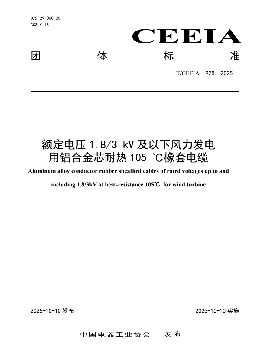 标准编号:T/CEEIA 928-2025