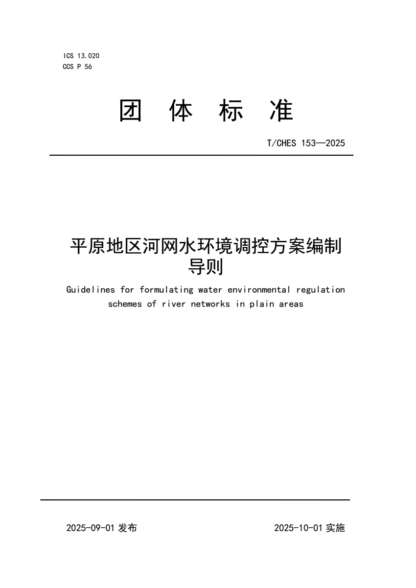 英文名称:Guidelines for formulating water environmental regulation schemes of river networks in plain areas