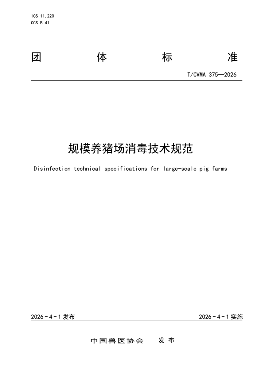 T_CVMA 375-2026 规模养猪场消毒技术规范.pdf
