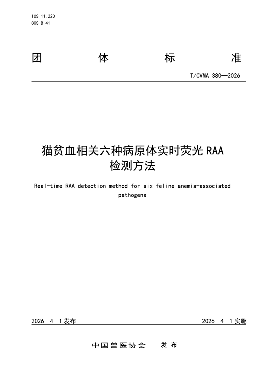T_CVMA 380-2026 猫贫血相关六种病原体实时荧光RAA检测方.pdf