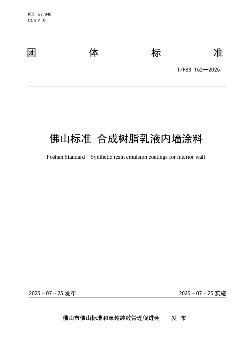 T_FSS 152-2025 佛山标准 合成树脂乳液内墙涂料.pdf