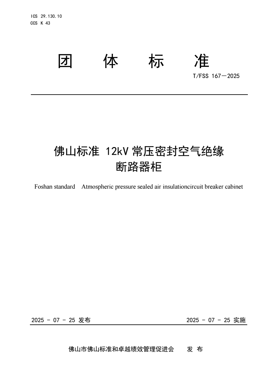 T_FSS 167-2025 佛山标准 12kV常压密封空气绝缘断路器柜.pdf