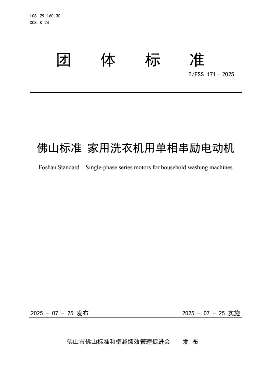 T_FSS 171-2025 佛山标准 家用洗衣机用单相串励电动机.pdf