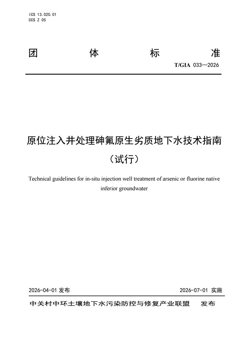 T_GIA 033-2026 原位注入井处理砷氟原生劣质地下水技术指南(.pdf