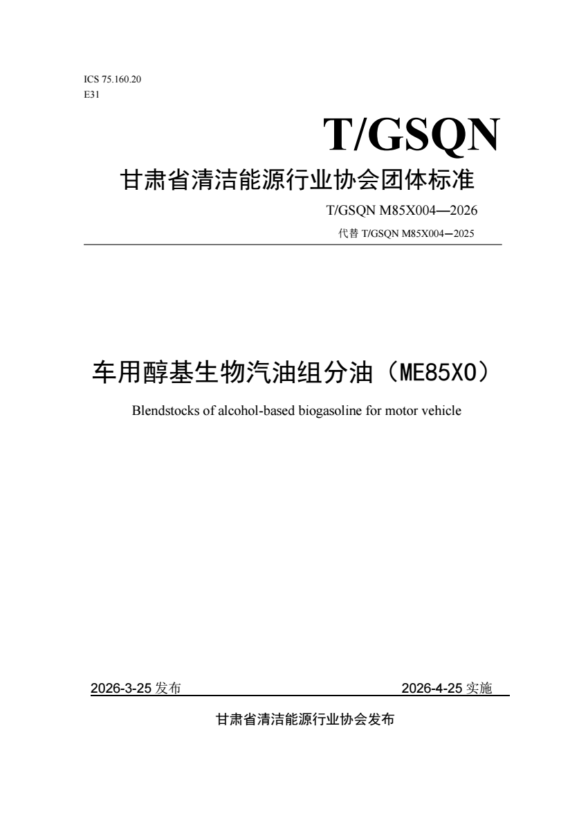T_GSQN M85X004-2026 车用醇基生物汽油组分油(ME85.pdf