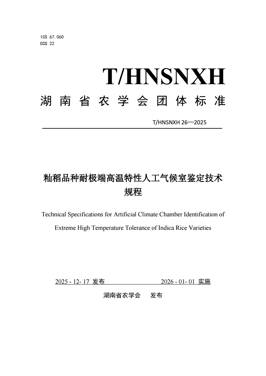 T_HNSNXH 26-2025 籼稻品种耐极端高温特性人工气候室鉴定技.pdf