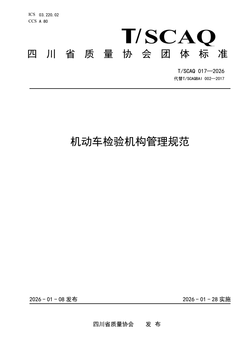 标准编号:T/SCAQ BA1 002-017-2026