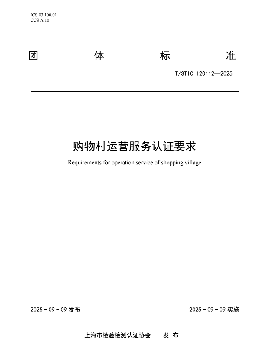 内容简介:本文件规定了购物村运营服务要求、管理要求以及服务认证评价要求。本文件适用于认证机构实施购物村运营服务认证活动,也适用于购物村运营服务组织规范其服务活动,以及组织的相关方(如行业协会)对其符合性的确认。 T_STIC 120112-2025 购物村运营服务认证要求.pdf(413.48 KB)