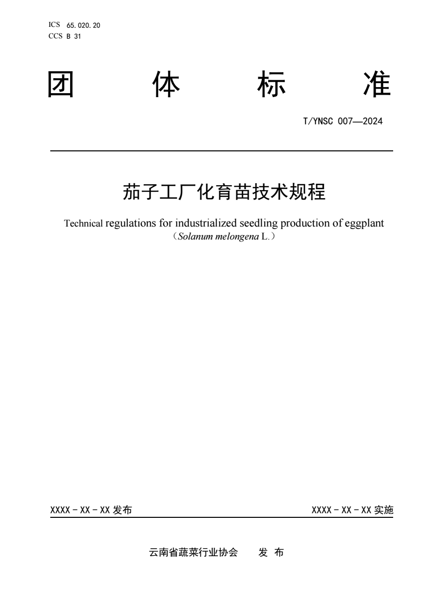 英文名称:Technical regulations for industrialized seedling production of eggplant (Solanum melongena L.)