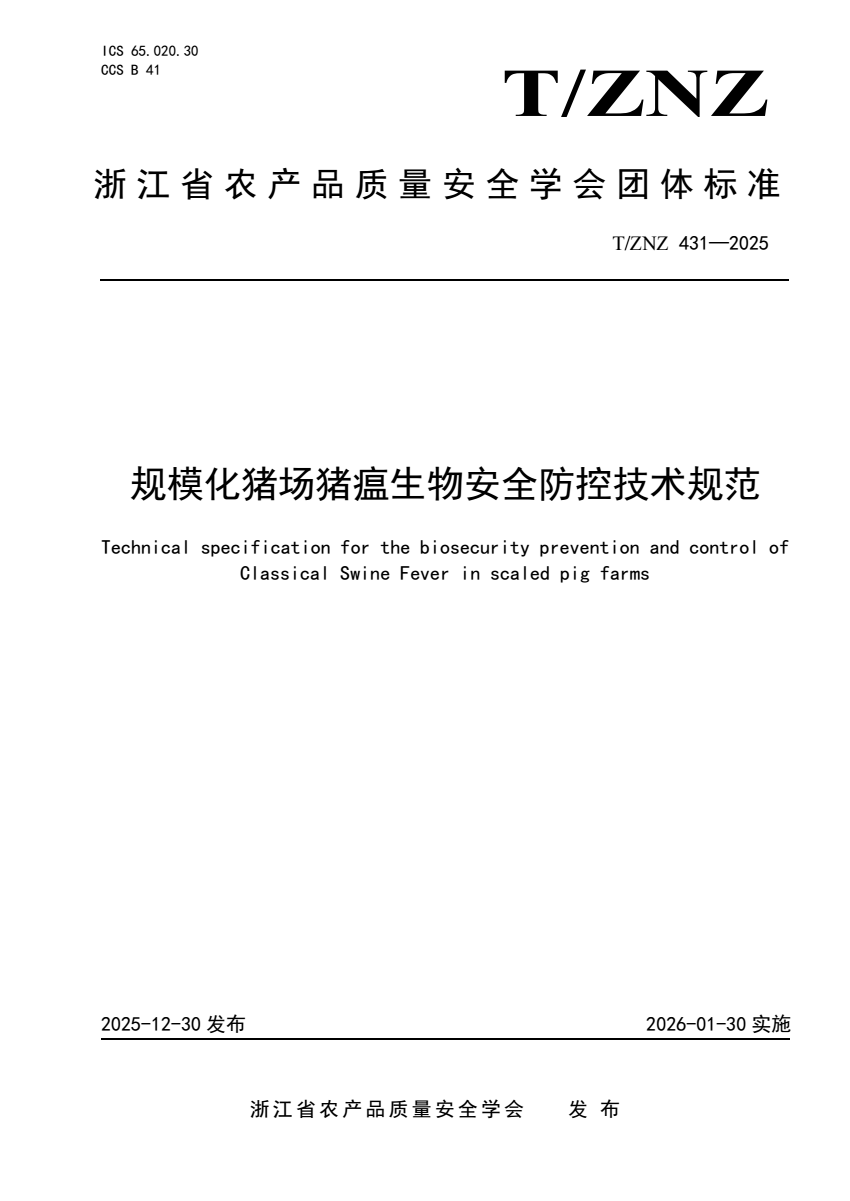 中文名称:规模化猪场猪瘟生物安全防控技术规范