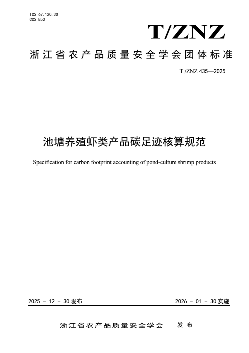 中文名称:池塘养殖虾类产品碳足迹核算规范