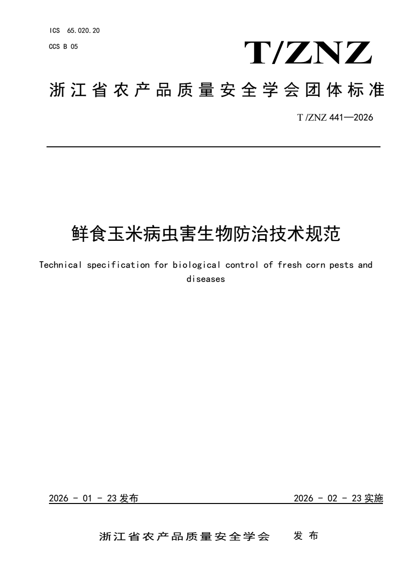 T_ZNZ 441-2026 鲜食玉米病虫害生物防治技术规范.pdf