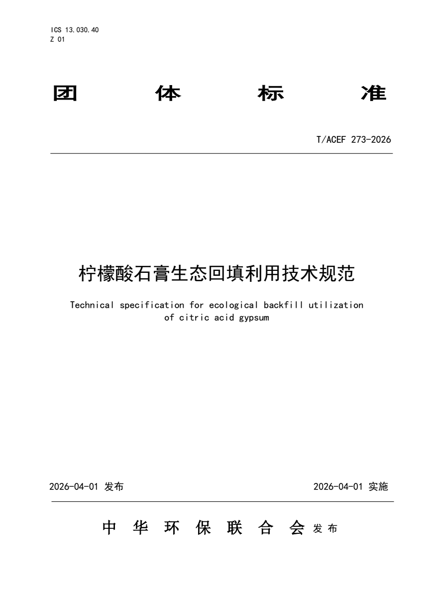 T_ACEF 273-2026 柠檬酸石膏生态回填利用技术规范.pdf