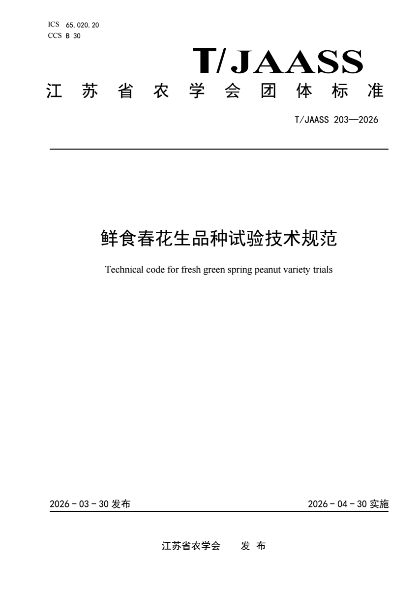 T_JAASS 203-2026 鲜食春花生品种试验技术规范.pdf