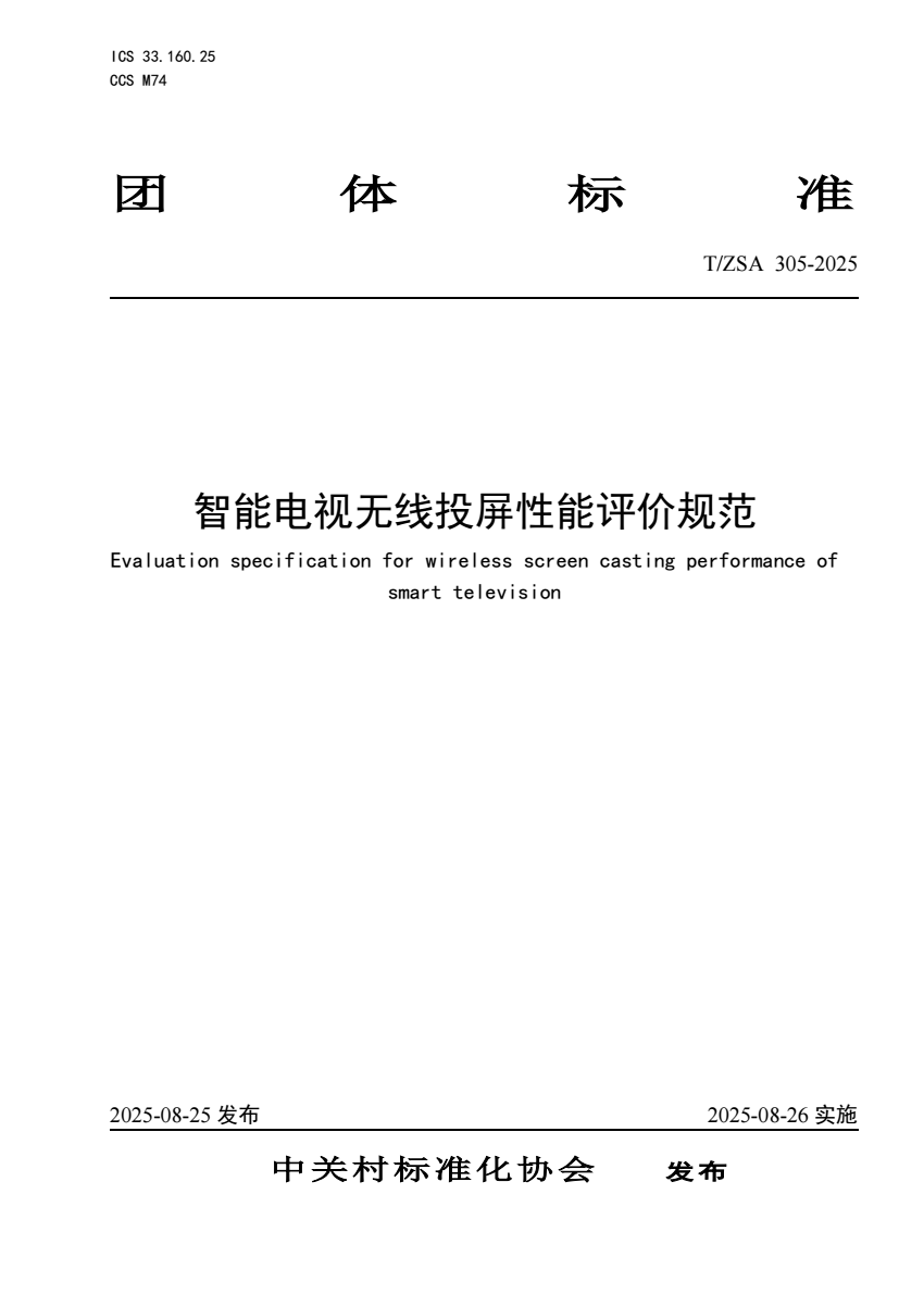 T_ZSA 305-2025 智能电视无线投屏性能评价规范.pdf
