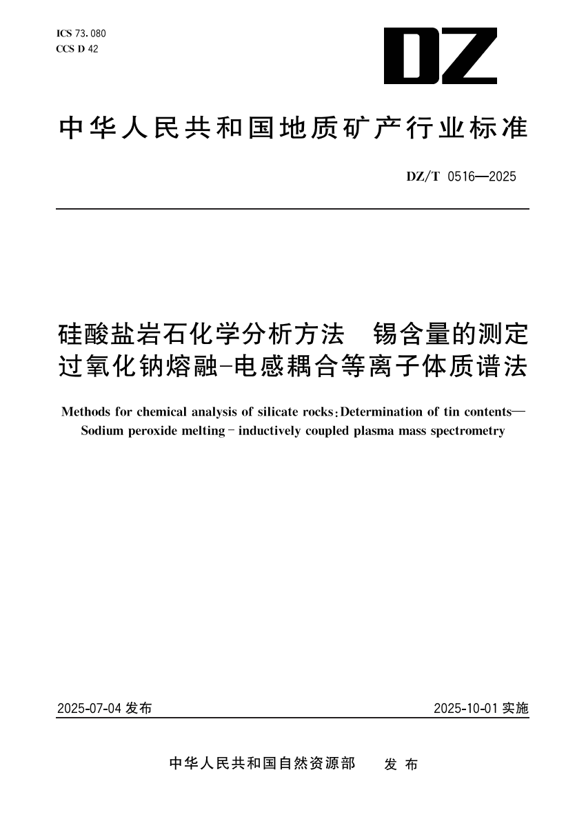 DZ_T 0516-2025 硅酸盐岩石化学分析方法锡含量的测定过氧化钠.pdf (2.07 MB)