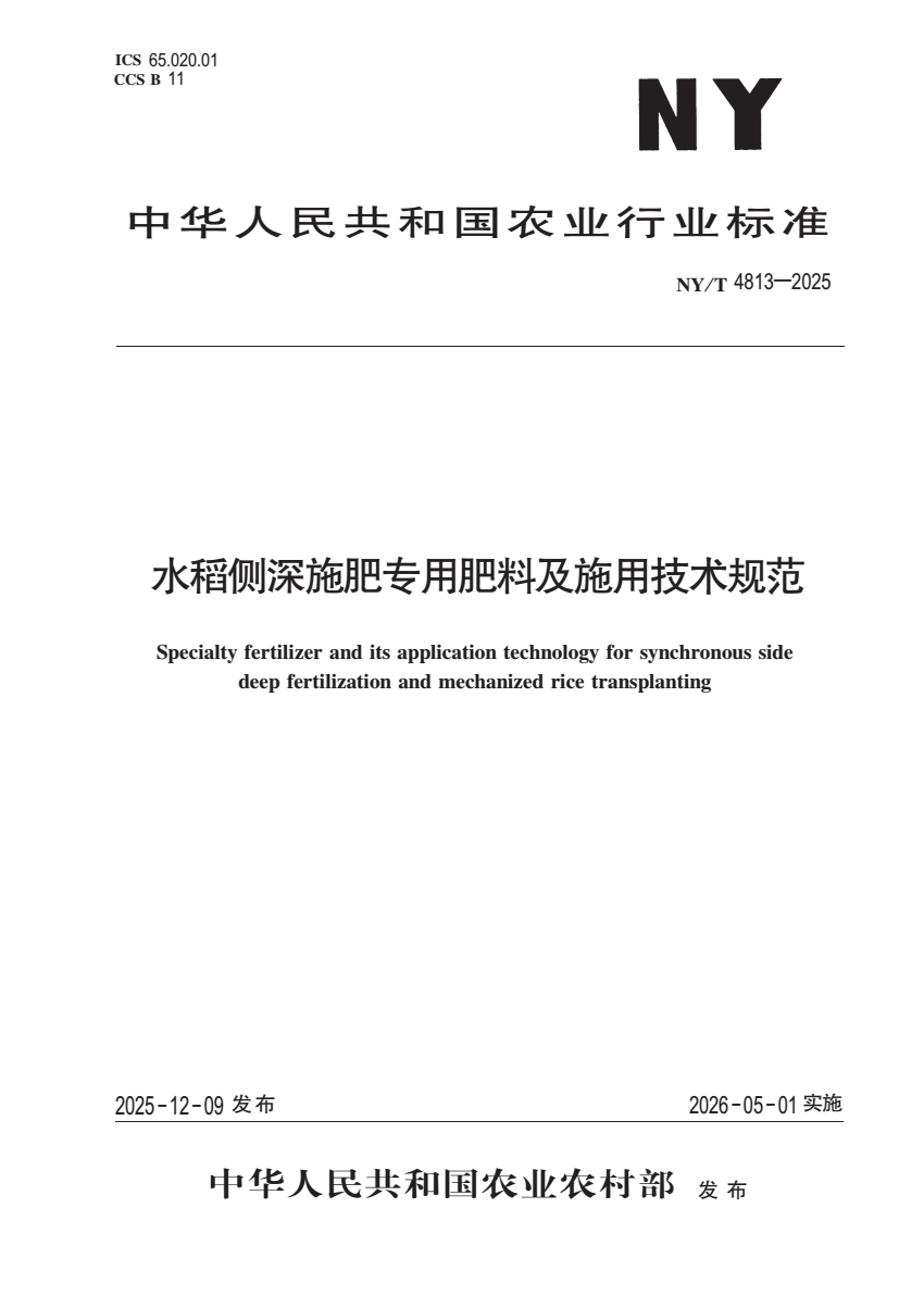 NY_T 4813-2025 水稻侧深施肥专用肥料及施用技术规范.pdf