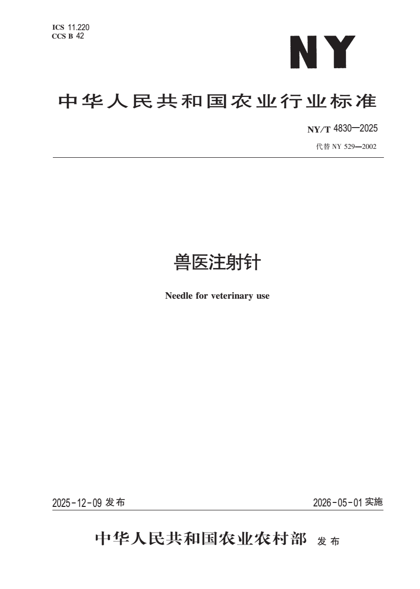 内容简介:本文件规定了兽医注射针的结构与命名、标记、要求、检验规则、标志和包装、运输和储存,描述了相应的试验方法。本文件适用于动物注射用金属材质的兽医注射针。