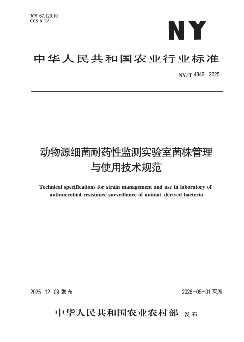 NY_T 4846-2025 动物源细菌耐药性监测实验室菌株管理与使用技.pdf