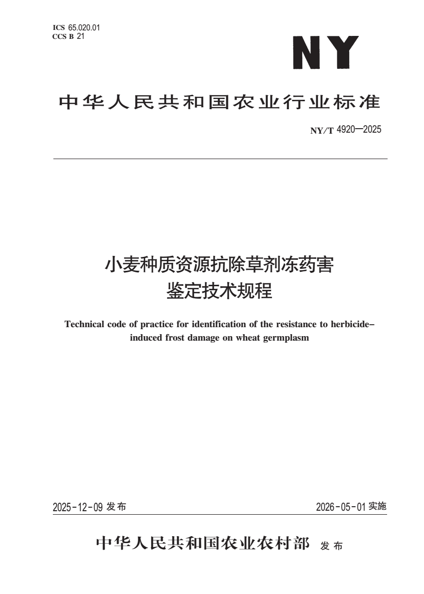 NY_T 4920-2025 小麦种质资源抗除草剂冻药害鉴定技术规程.pdf