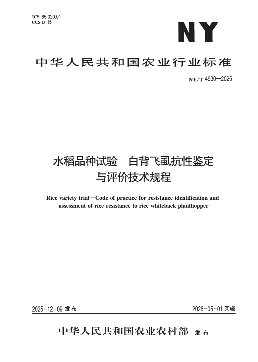 NY_T 4930-2025 水稻品种试验 白背飞虱抗性鉴定与评价技术规.pdf (3.39 MB)
