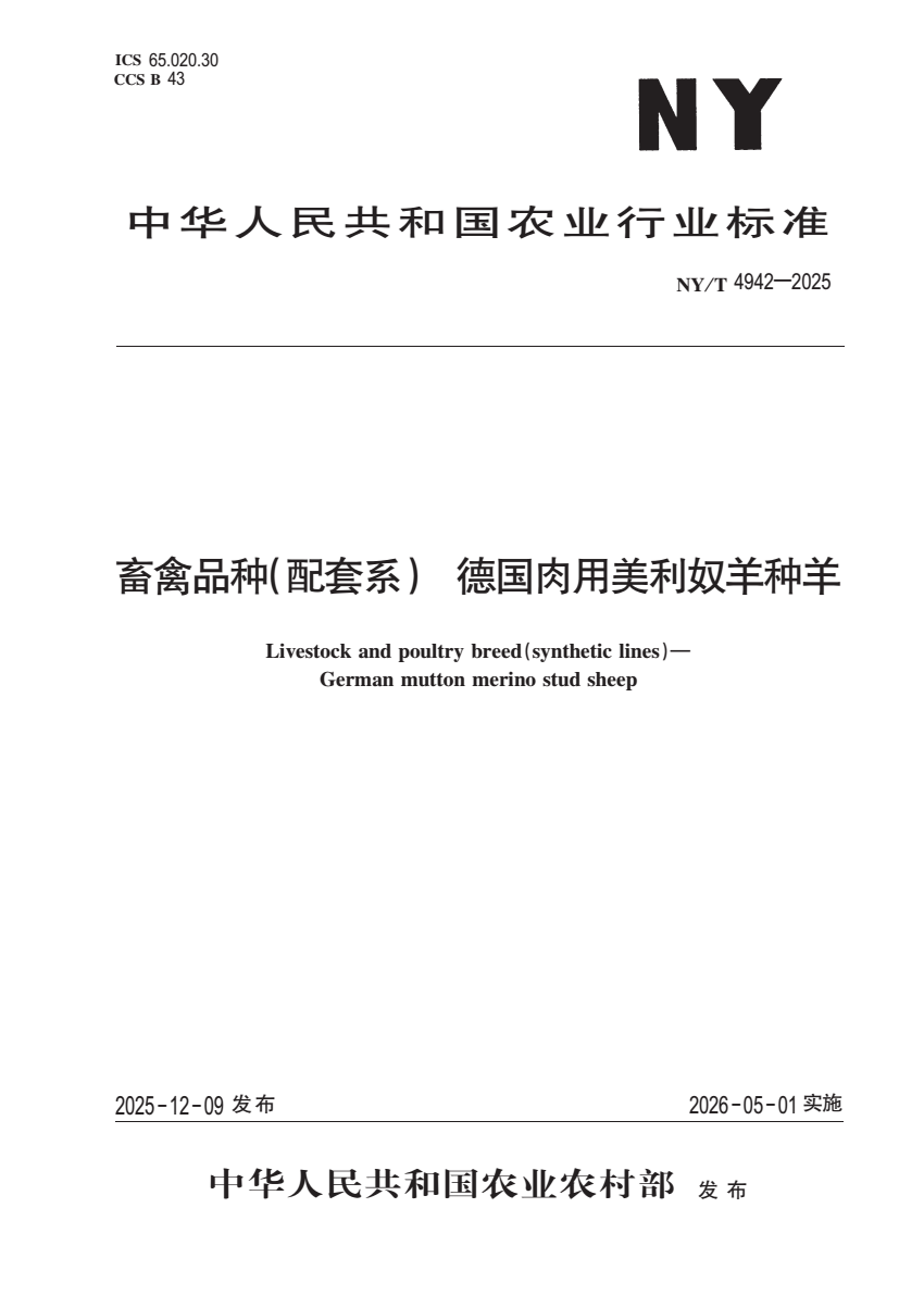 NY_T 4942-2025 畜禽品种(配套系) 德国美利奴羊种羊.pdf