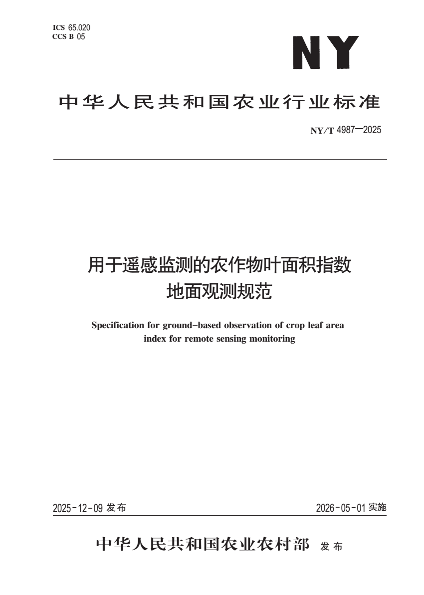 NY_T 4987-2025 用于遥感监测的农作物叶面积指数地面观测规范.pdf (731.75 KB)
